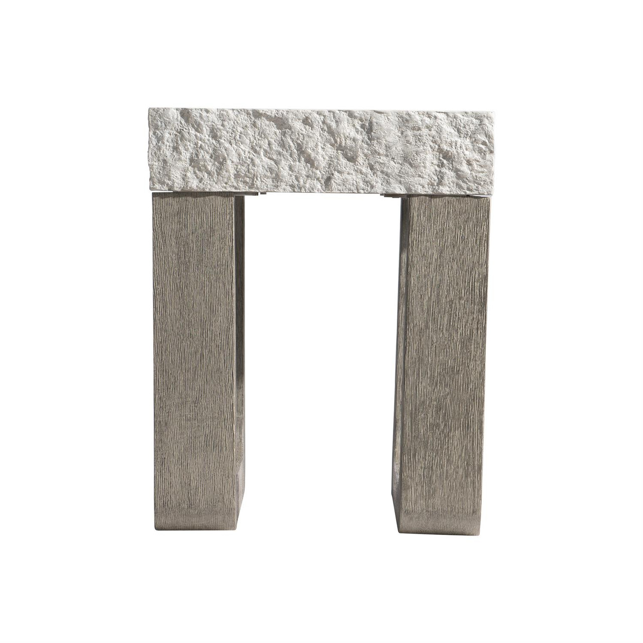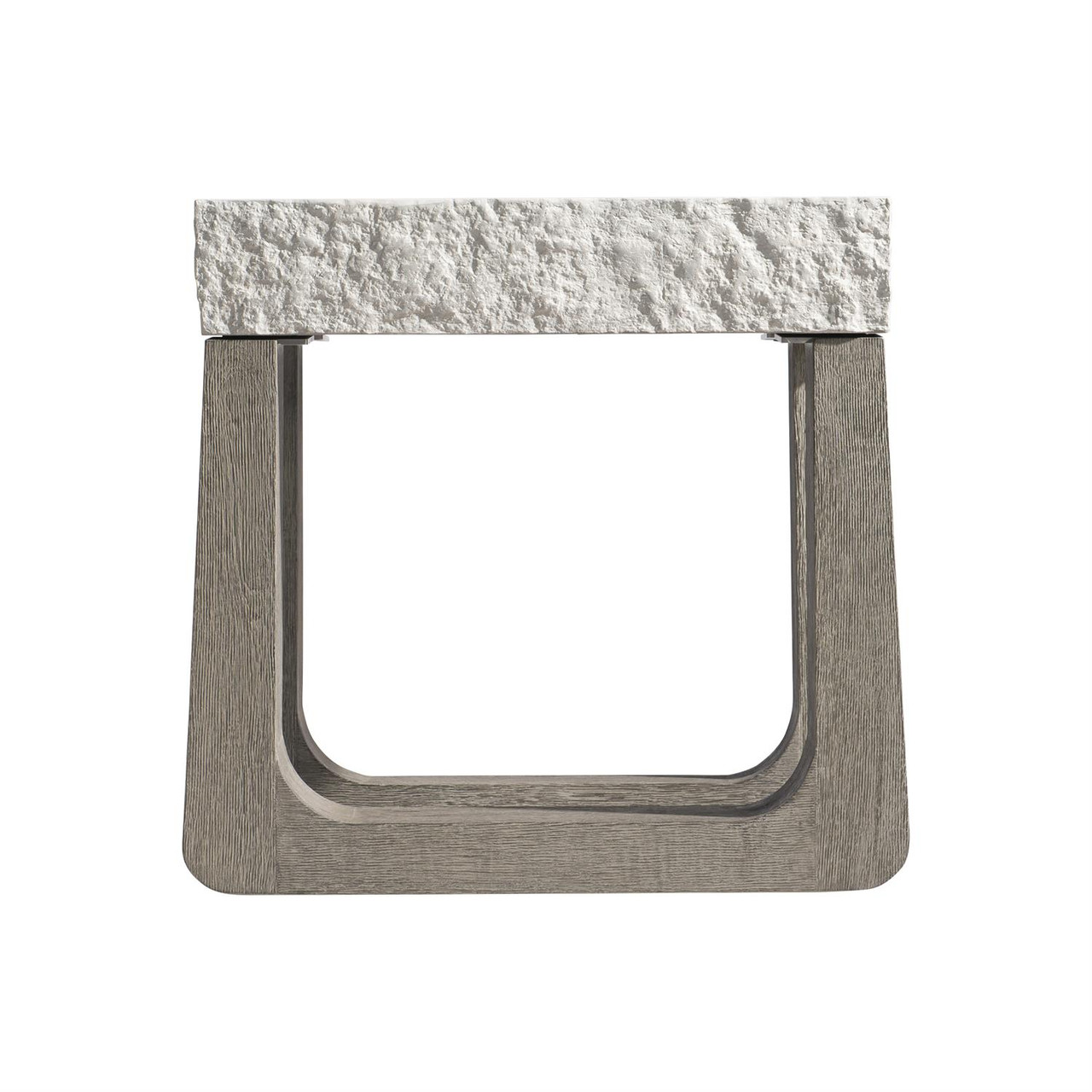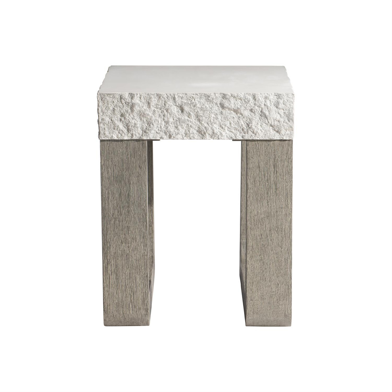 Shape and texture give a unique style to this teak and concrete side table.