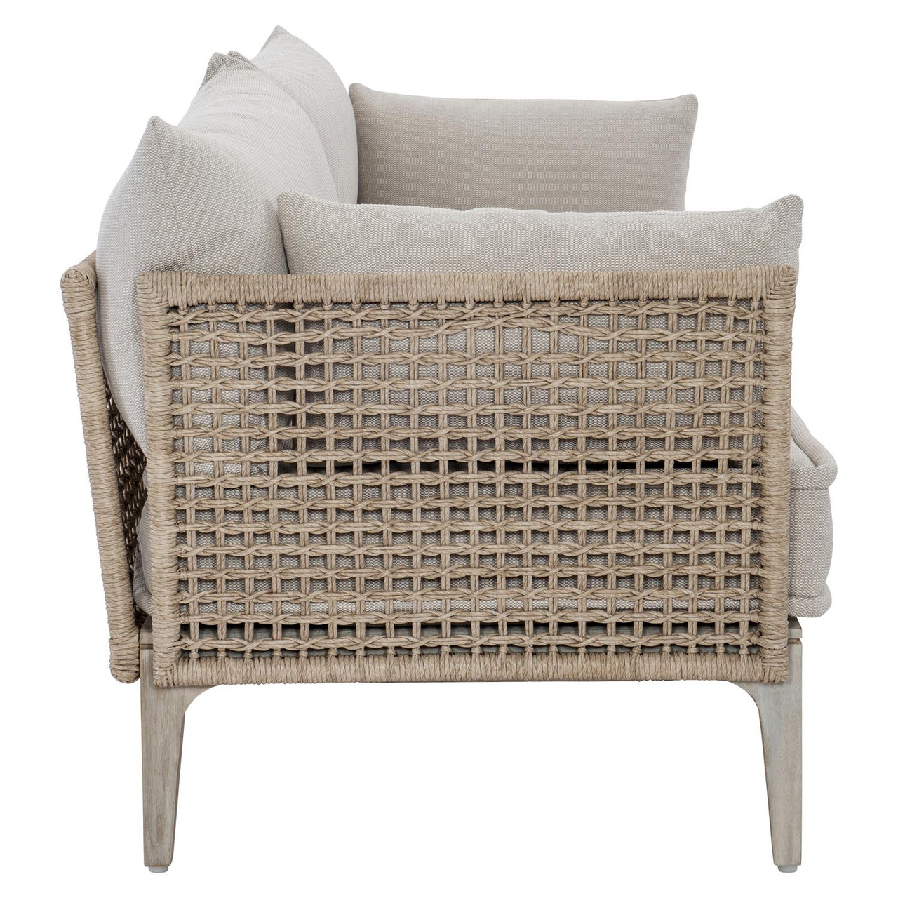 Woven and smooth surfaces create a textural tale on this sophisticated outdoor lounge chair.