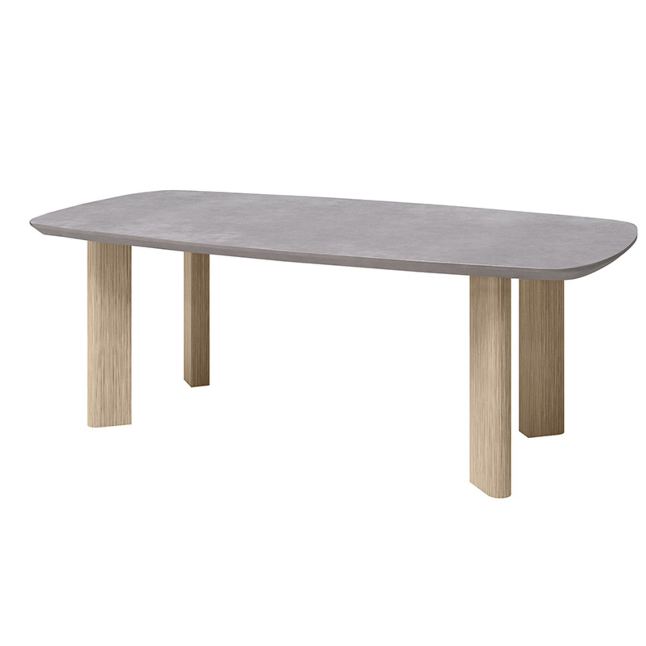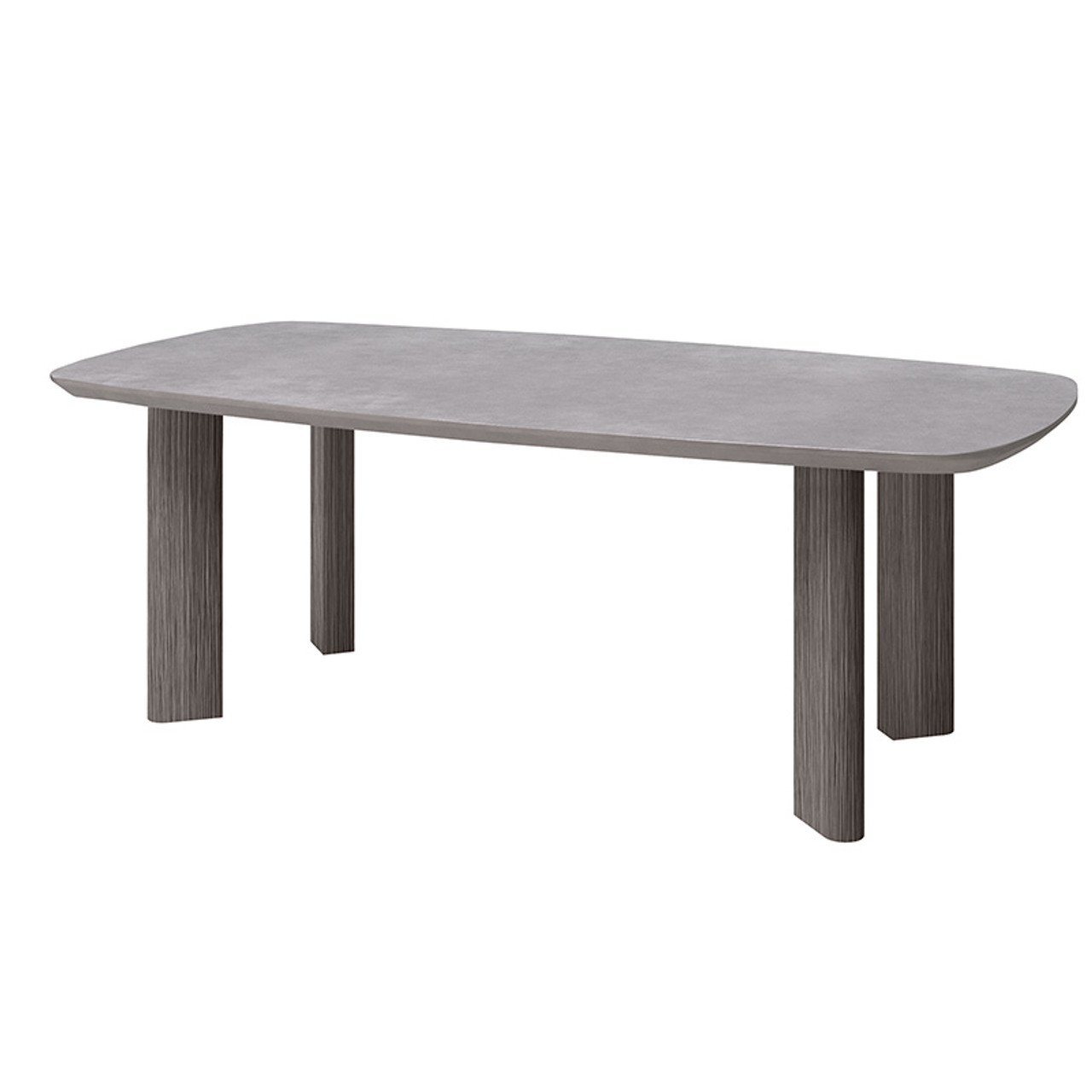 Forano aluminum table bases are available in Hickory, Flax or Smoke Finishes. Bellino aluminum tops are finished in rustic Ivory, Concrete or Iron.