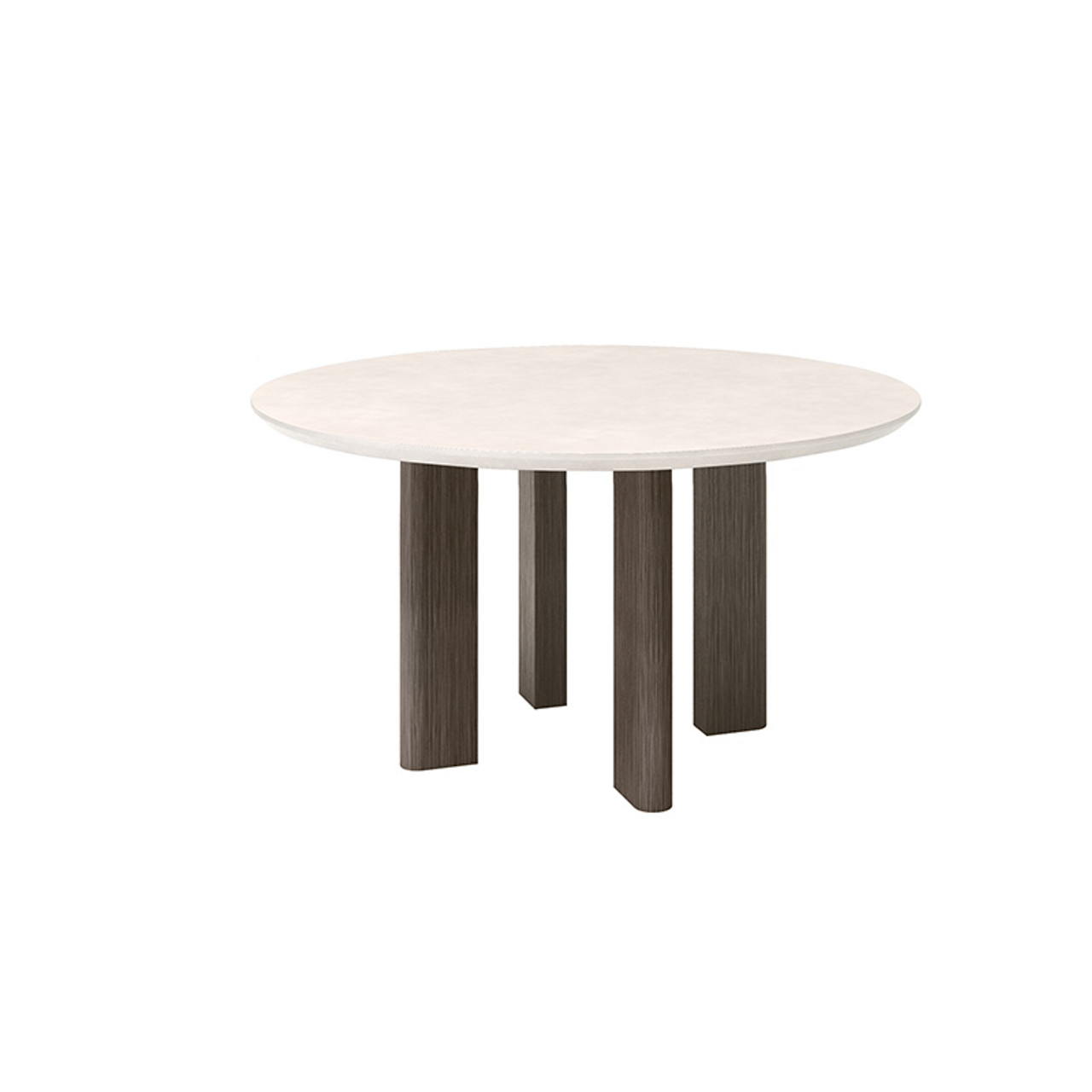 Forano aluminum table bases are available in Hickory, Flax or Smoke Finishes. Bellino aluminum tops are finished in rustic Ivory, Concrete or Iron.