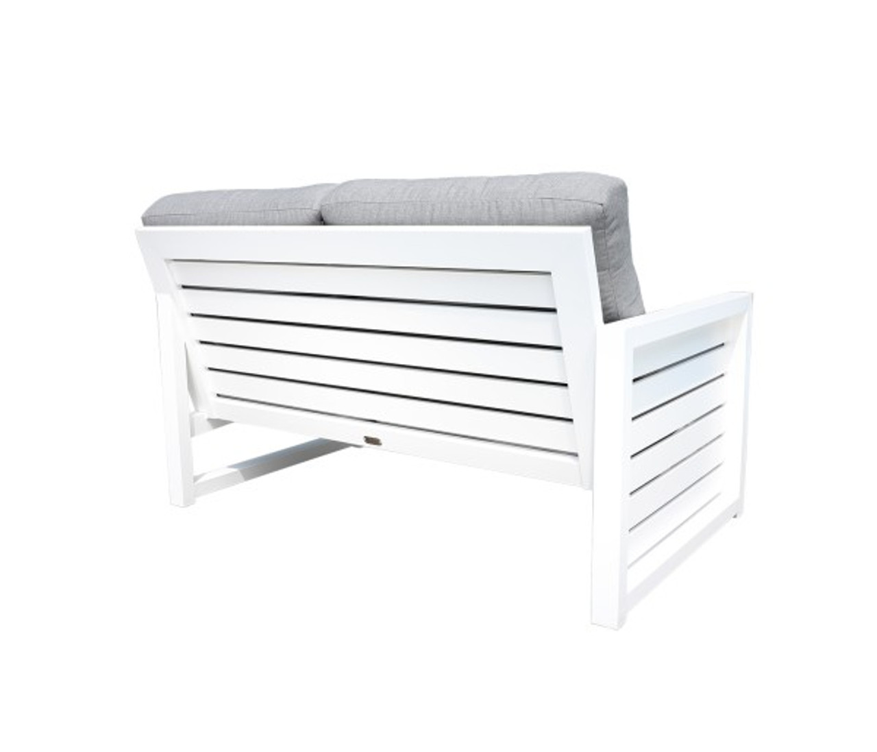 The Gramercy patio furniture collection is beautifully deisgned in TigerDrylac® White cast aluminum. The cast aluminum frames are easy to maintain. The luxurious design is suitable for residential and commercial settings. The Gramercy outdoor sectional patio furniture group photo is shown in Sunbrella® 40434 Cast Slate cushions, pillows in 21″*13″ Tempotest® 51353-8 Mason Cherry and 18″ 986-98 Home Cherry.