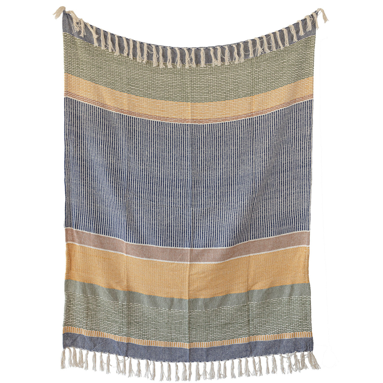 This super soft brushed cotton throw from Foreside Home and Garden is a beautiful lightweight option for staying cozy or draping over a bench for a pop of color. Rich, earthy colors give this hand-woven throw a cozy boho vibe. The striped sections are woven with subtle geometric patterns and the unbleached cotton tassel fringe edges add the perfect amount of textural charm.