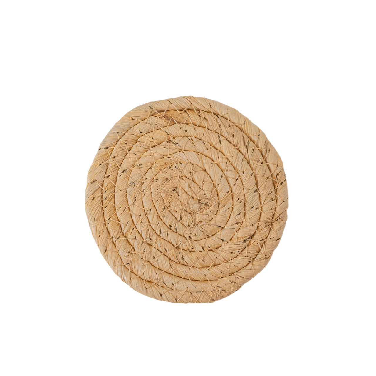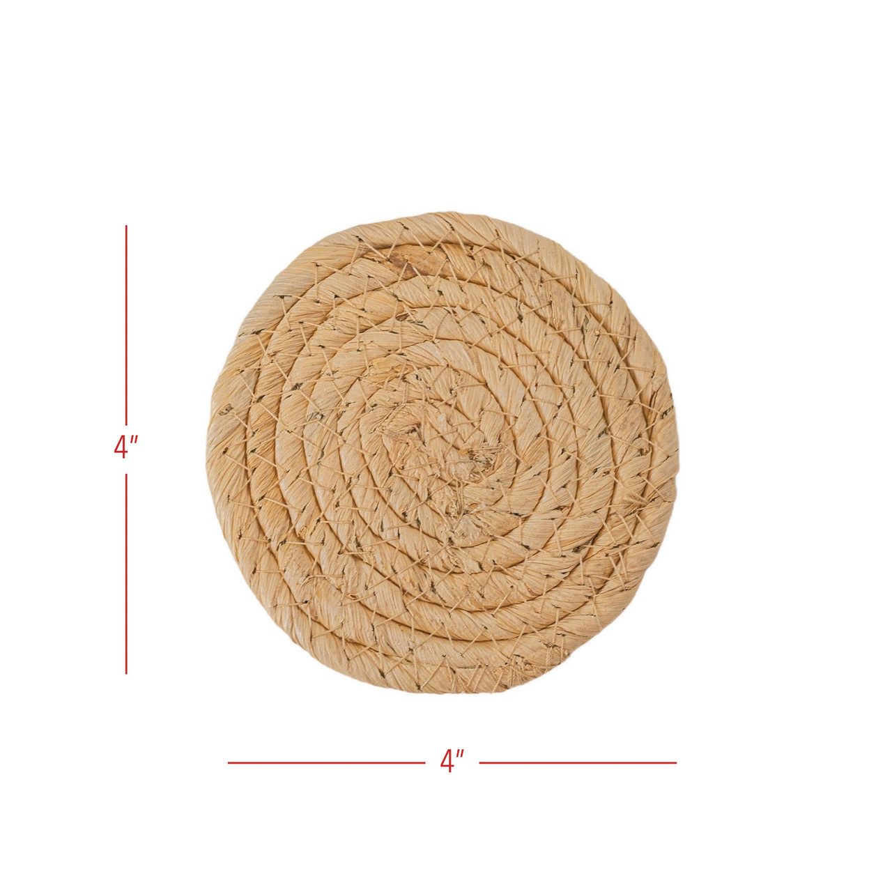 A beautiful set of four coasters crafted from natural corn husk fibers. Charming and functional, the hand-woven structure of the corn husk is an elegant touch to your boho home decor. A timeless design and neutral color palette make these coasters perfect for any living space or tablescape any time of the year.