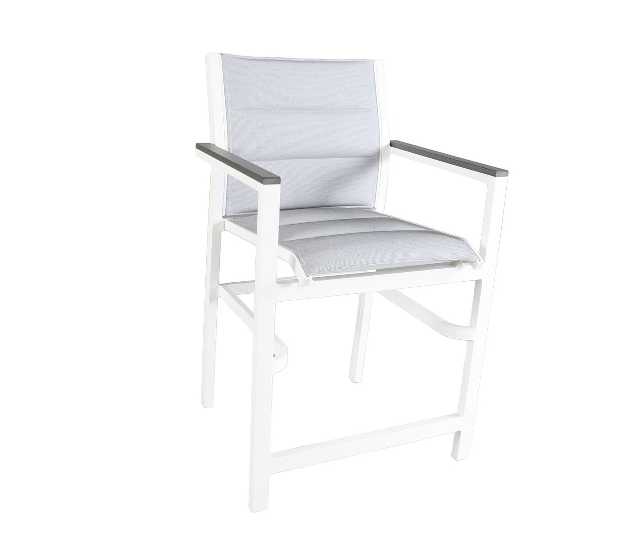 The Origin Padded Resort Balcony Stool includes a Mica SOL Teak™ arm accent & is offered in 2 fabric & finish combinations, employing innovative Batyline® Elios™ fabrics, which both have a soft feel & a Wyzenbeek Double Rub count of > 600,000 = Heavy Duty rated. Stackable.