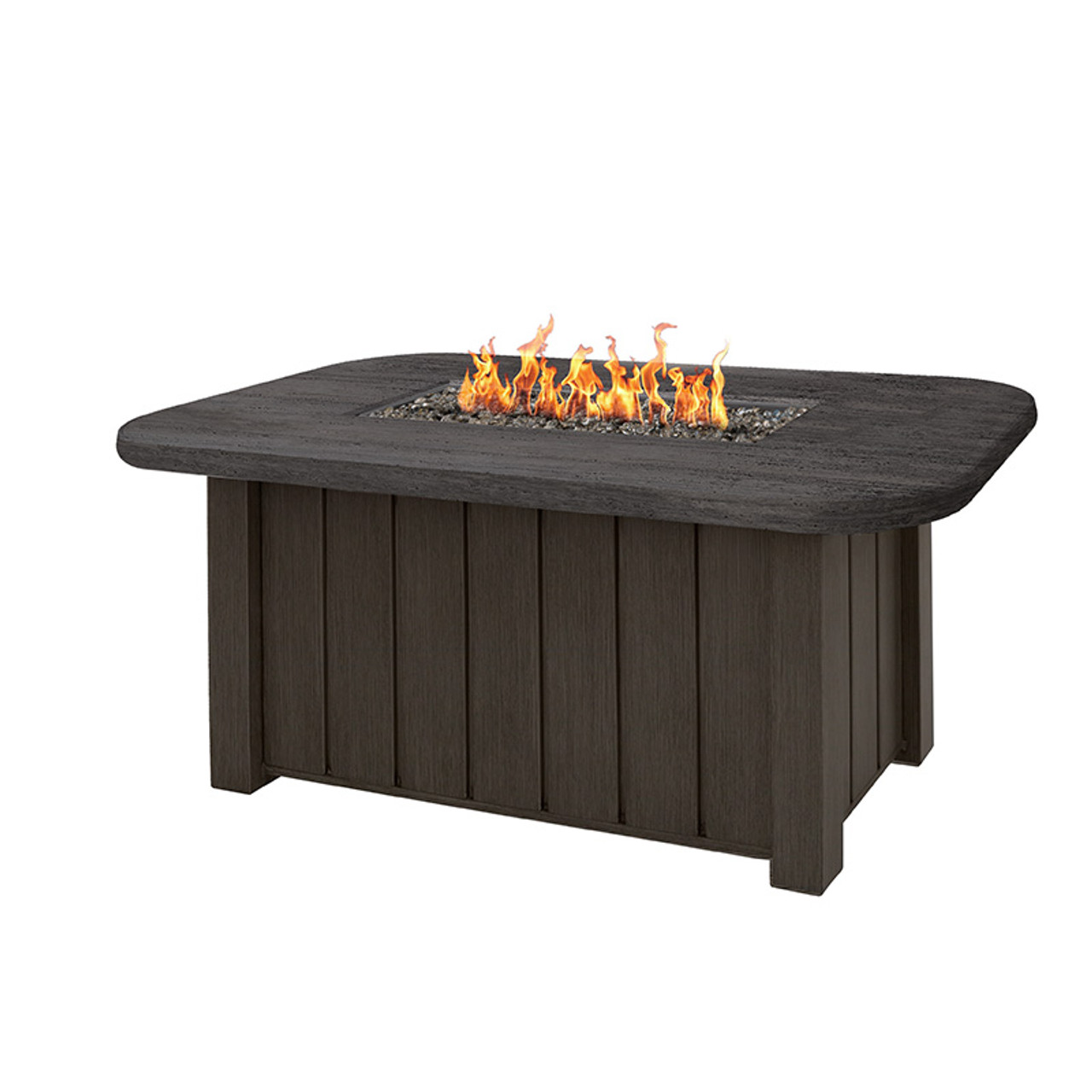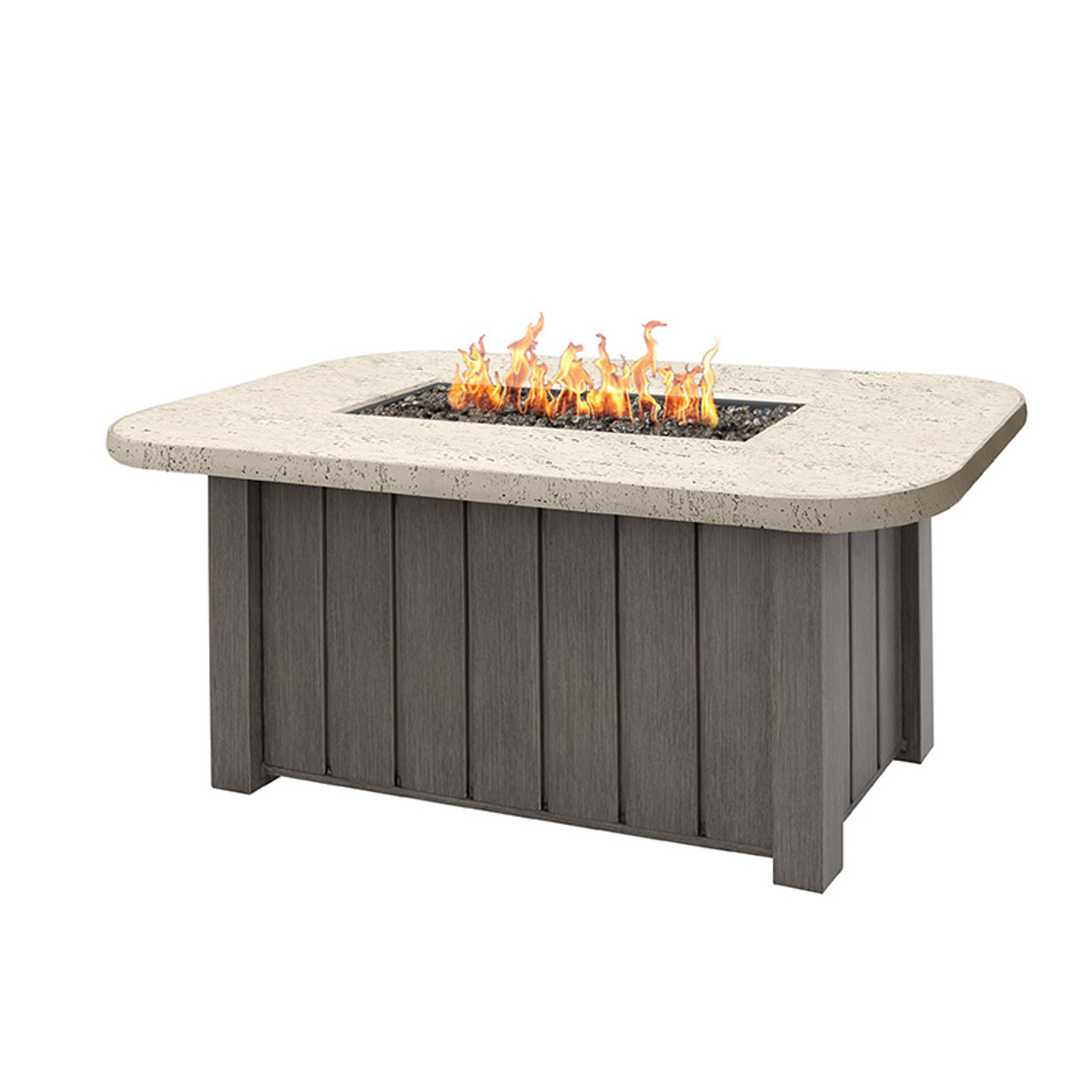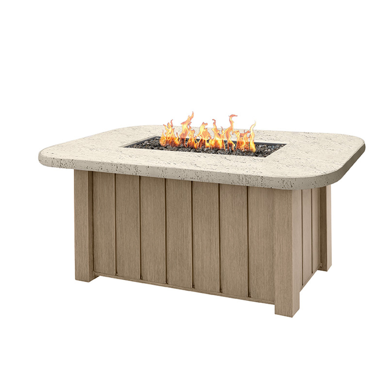 Fire Pit uses a standard 20lb propane tank (not included). Fire Glass sold separately — 25 lbs. of fire glass recommended.